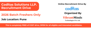 Online Recruitment Drive for Coditas Solutions LLP, Pune | Hiring for “Software Development” 2026 Batch as Freshers | Drive Organized by VibrantMinds Technologies Pvt. Ltd. |