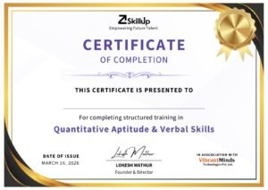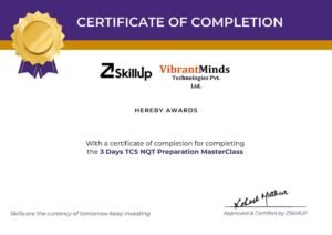 VibrantMinds Technologies Pvt. Ltd., in association with ZSkillUp Education Private Limited, is organizing a 3-Day Offline TCS NQT Preparation Workshop for pre-final year and final year engineering students who are planning or have already registered for the TCS National Qualifier Test (TCS NQT).